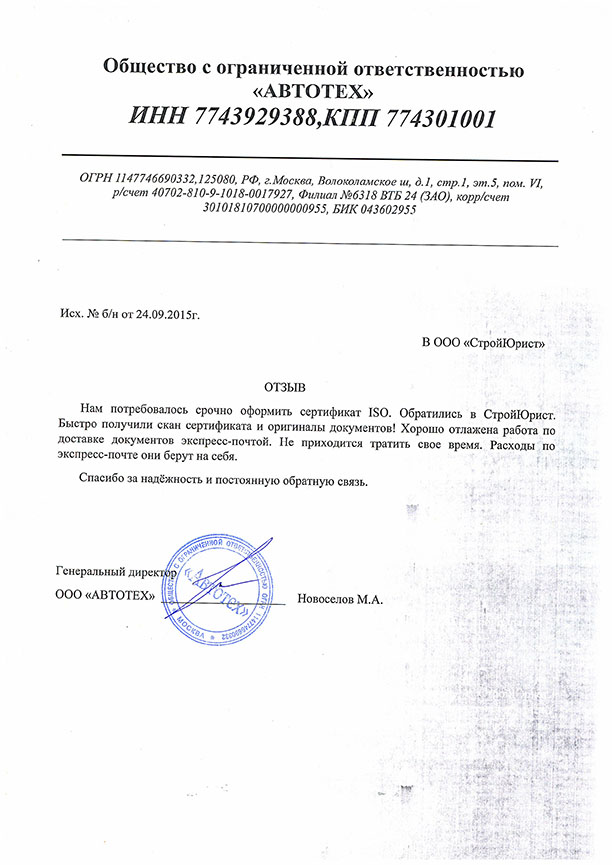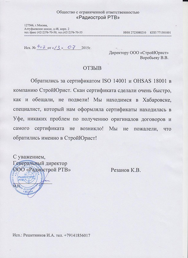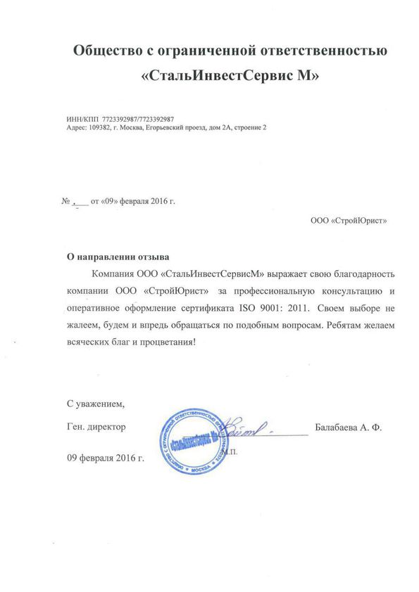 Отзывы клиентов "СтройЮрист" по ISO в Лобне