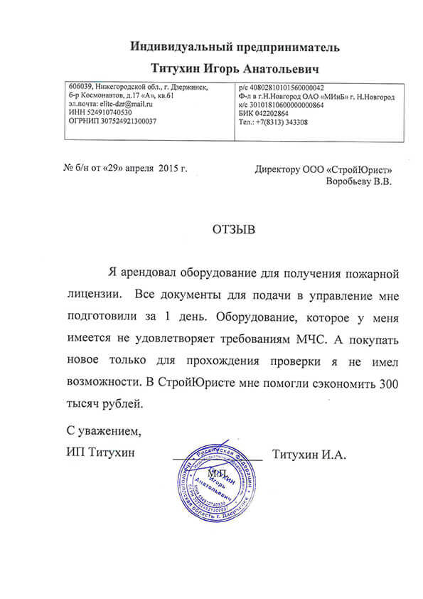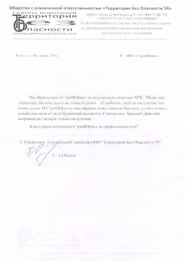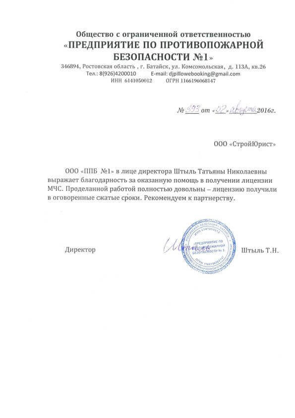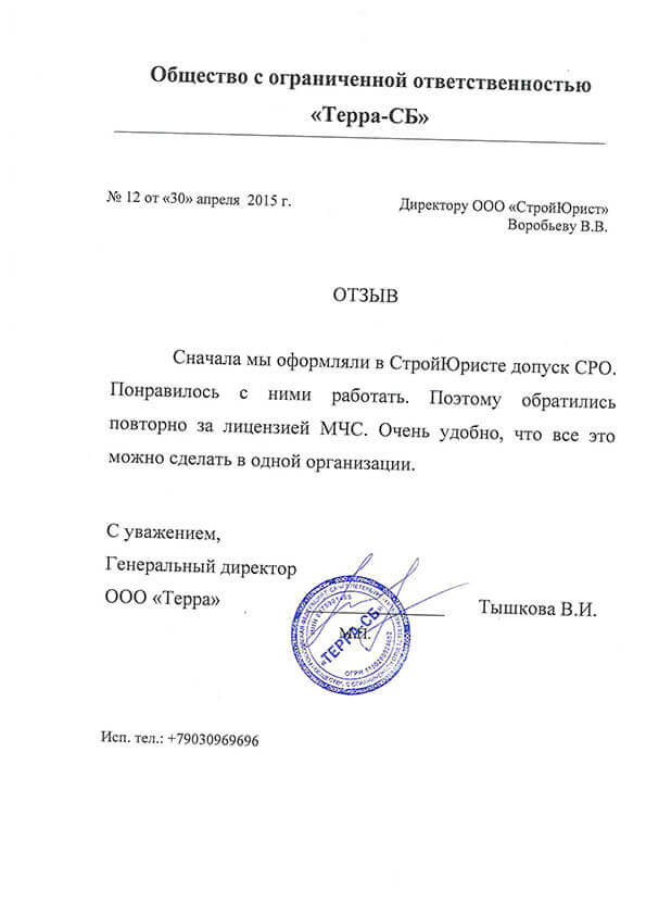 Отзывы клиентов "СтройЮрист" по лицензированию МЧС в Лобне