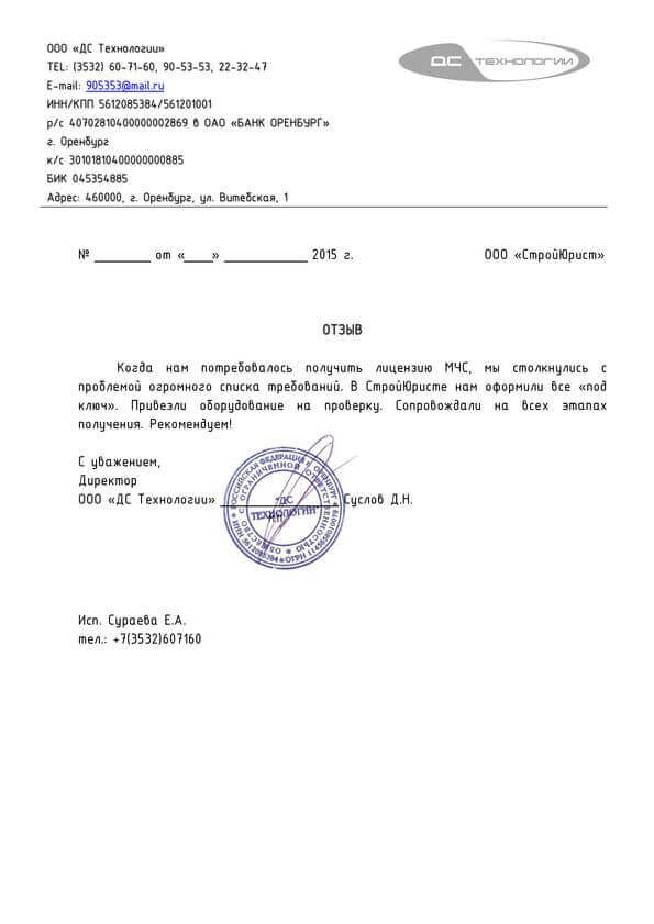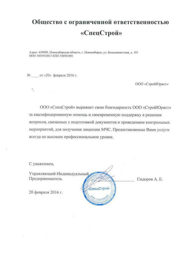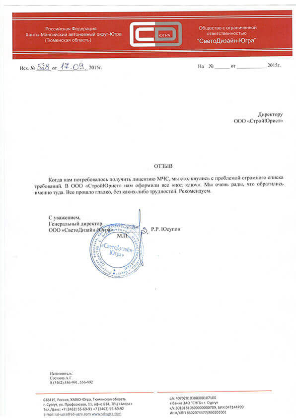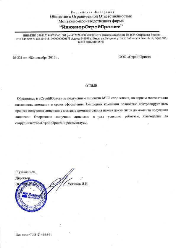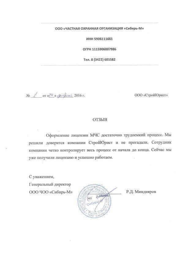 Отзывы клиентов "СтройЮрист" по лицензированию МЧС в Лобне