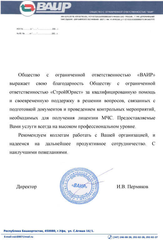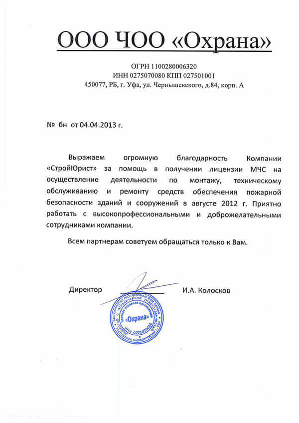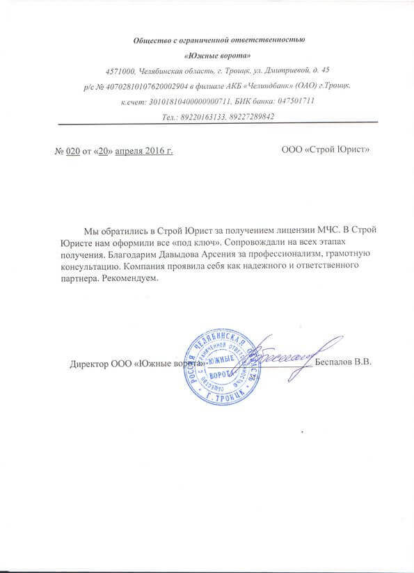 Отзывы клиентов "СтройЮрист" по лицензированию МЧС в Лобне