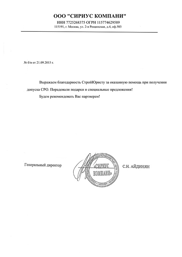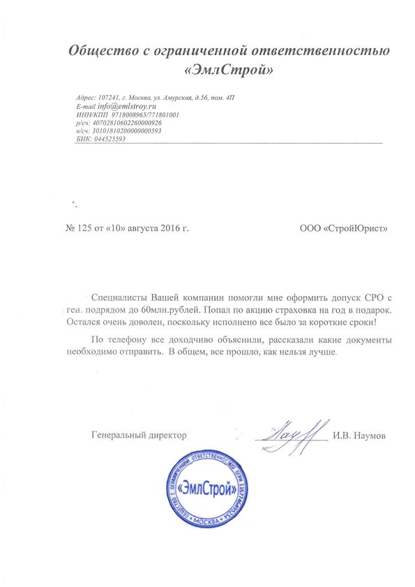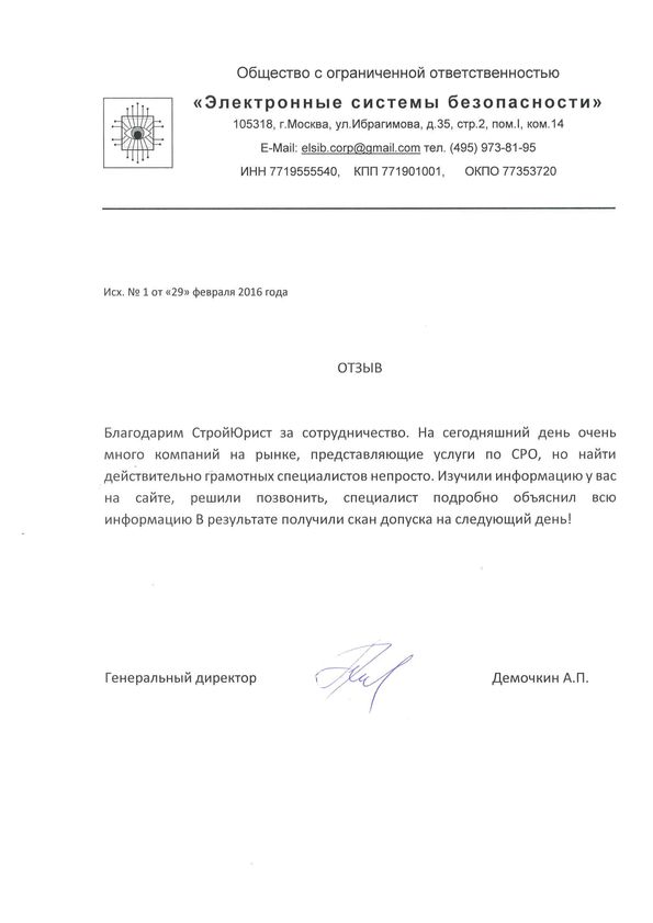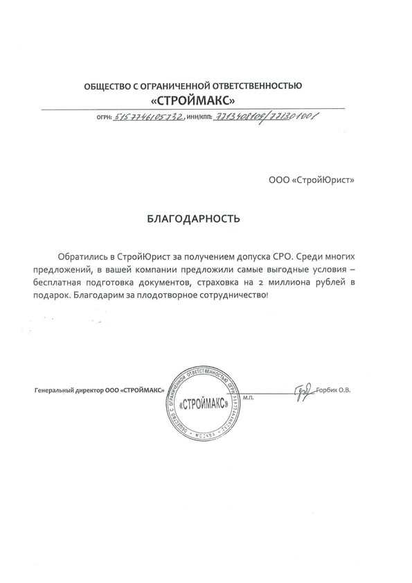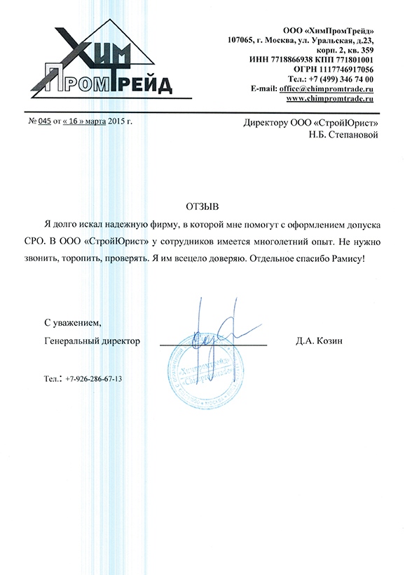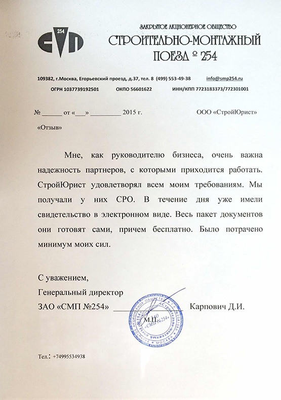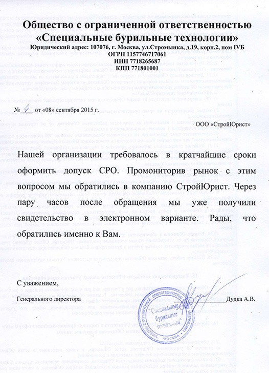 Отзывы клиентов "СтройЮрист" по вступлению в СРО в Лобне