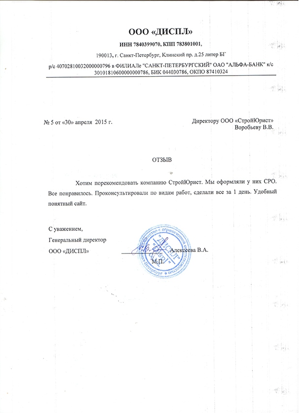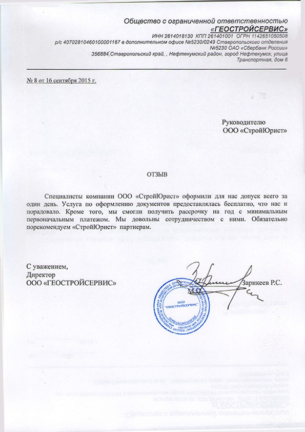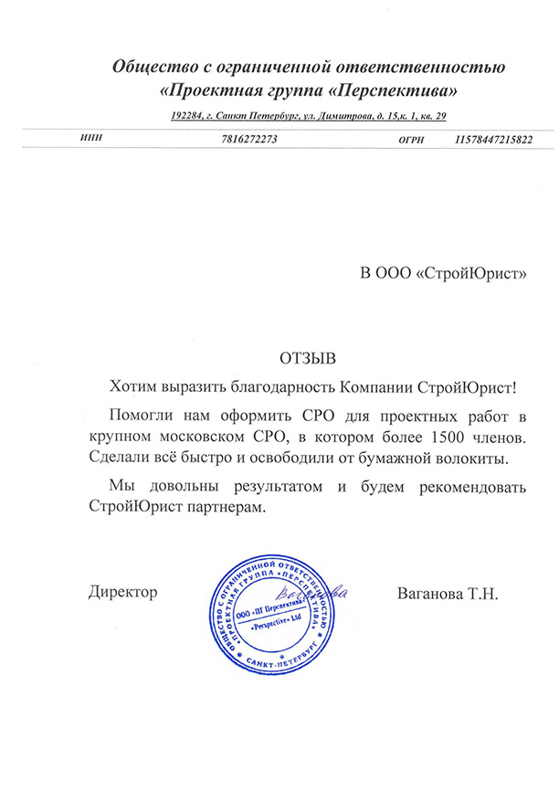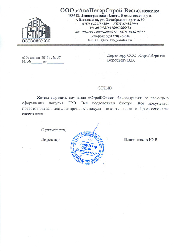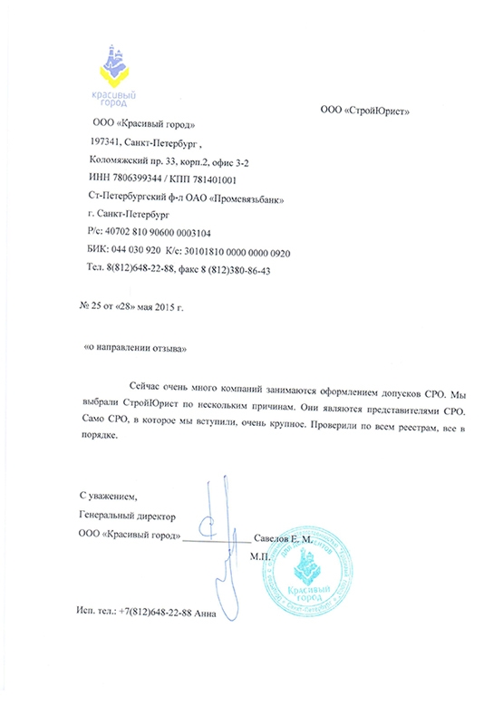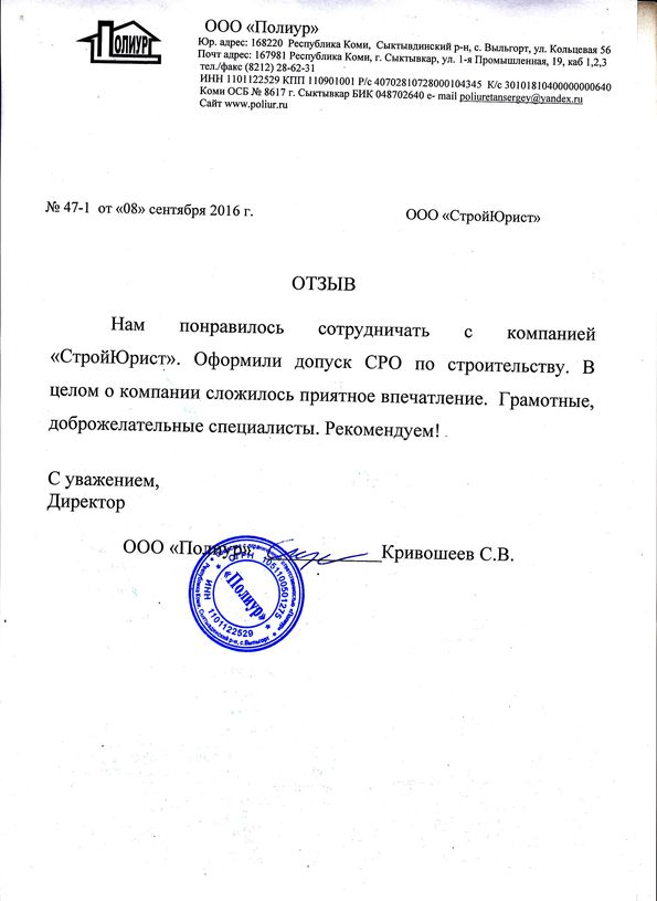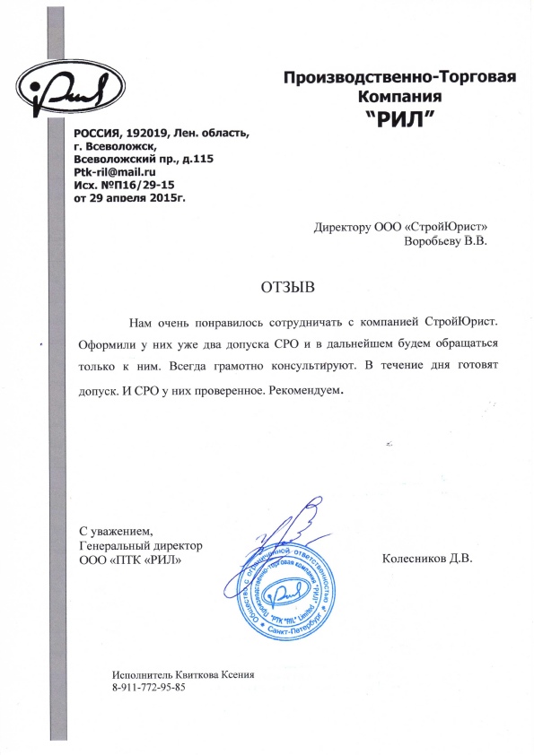 Отзывы клиентов "СтройЮрист" по вступлению в СРО в Лобне