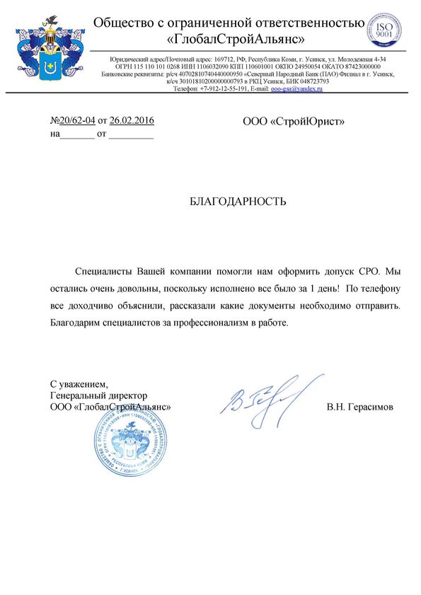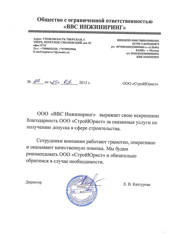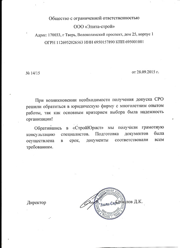 Отзывы клиентов "СтройЮрист" по вступлению в СРО в Лобне