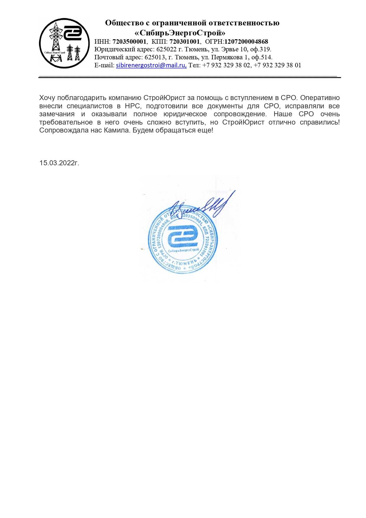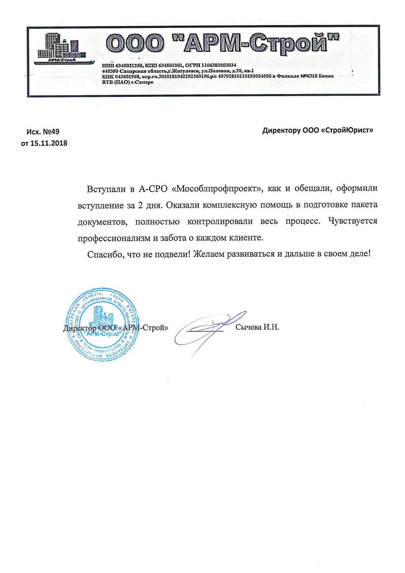 Отзывы клиентов "СтройЮрист" по вступлению в СРО в Лобне