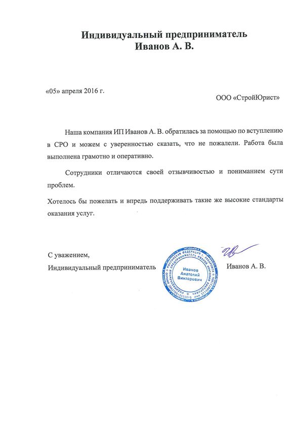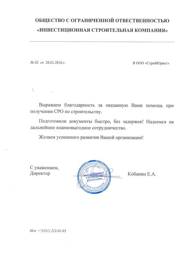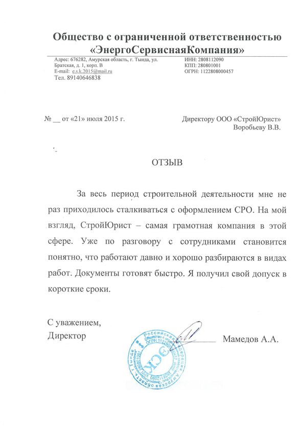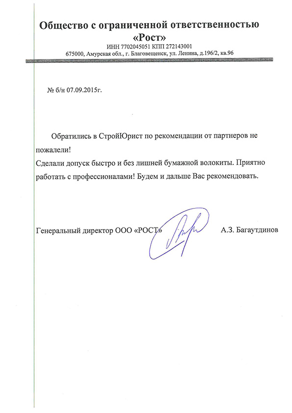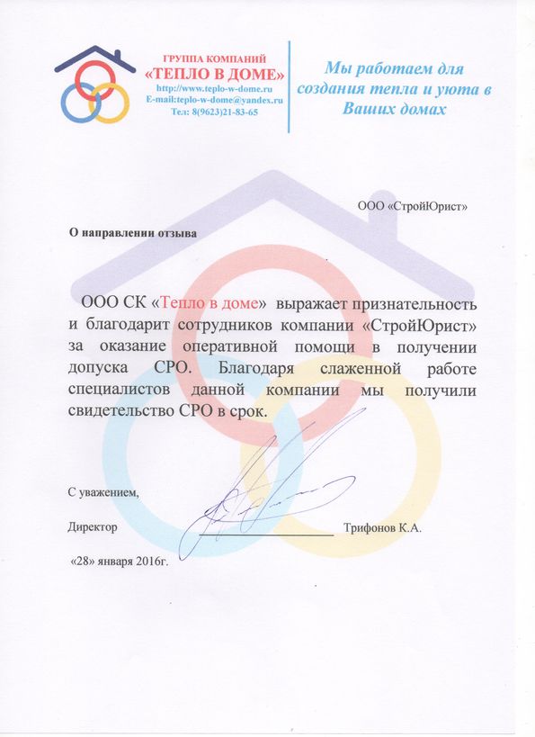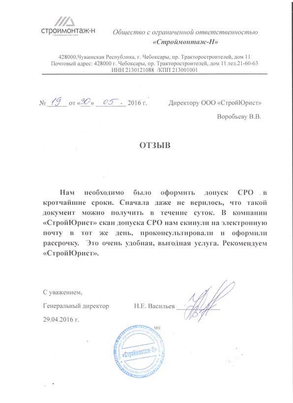 Отзывы клиентов "СтройЮрист" по вступлению в СРО в Лобне